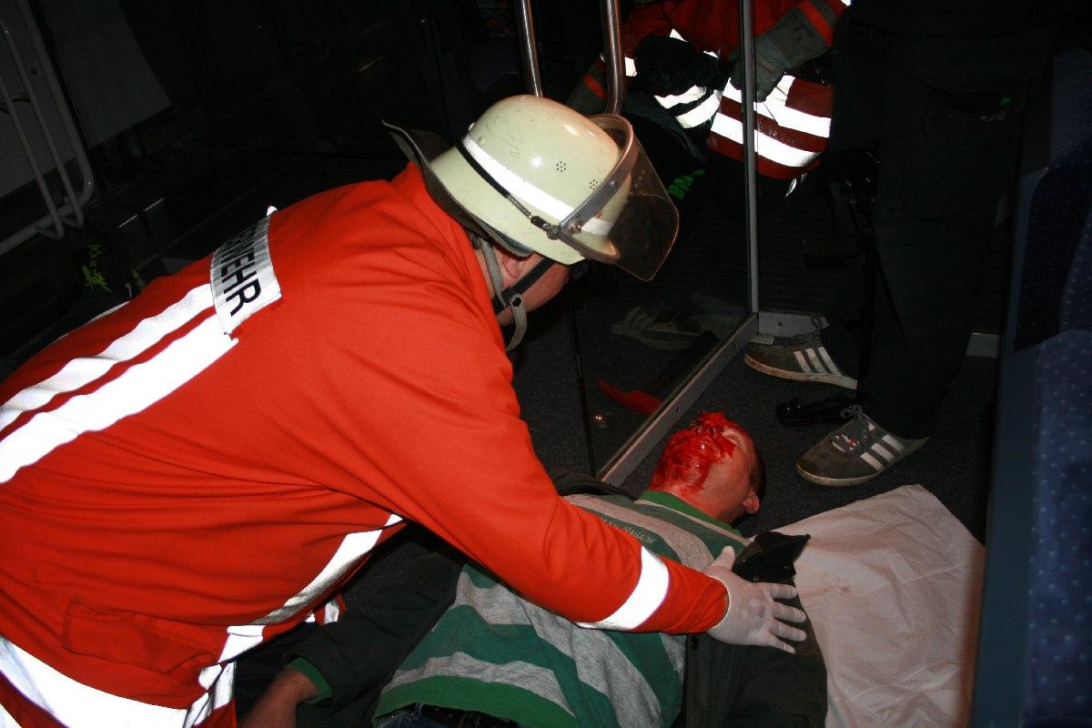 Um möglichst Einsatzrealistisch die Verletzten retten zu können, wurde eine Bereitschaft der Feuerwehr als Unfalldarsteller eingesetzt. Diese wurden durch die Truppe der realistischen Notfalldarstellung geschminkt und auf die verschiedenen Verletzungsmuster im Verhalten geschult.