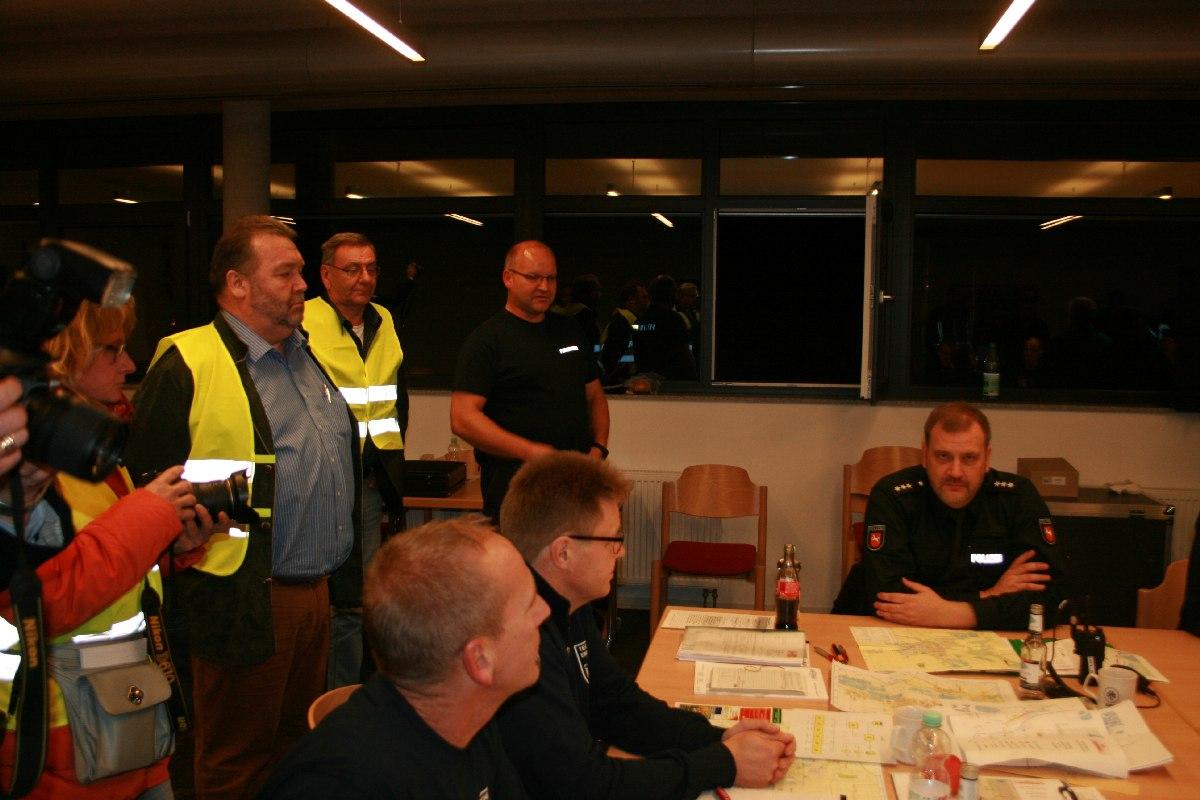 Während die Einsatzkräfte eine erste Sichtung in den verschiedenen Wagons unternahmen, fuhren parallel die nachalarmierten Kräfte zum Bereitstellungsraum am Sportplatz Ruther Straße. Der Stellv. StadtBM Jens Klug übernahm im Feuerwehrhaus Sarstedt mit Unterstützung der technischen Einsatzleitung die Gesamtverantwortung. Die örtliche Einsatzleitung am Rettungsplatz führte der OrtsBM Sarstedt, Ulrich Meyer.