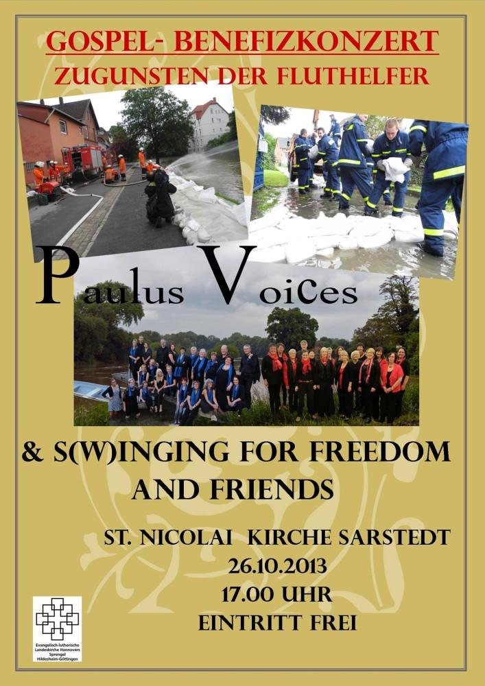 Sarstedt (sei). Vor wenigen Monaten stand Sarstedt an der Schwelle einer Hochwasserkatastrophe. Nur durch den professionellen und bestens koordinierten Einsatz zahlreicher Helfer, vor allem von Feuerwehr und THW sowie dem Bauhof der Stadt, konnte diese verhindert werden. Für den strapaziösen Einsatz, der die Helfer an die Grenze ihrer Kräfte brachte, wollen die Paulus-Voices mit einem Benefizkonzert am 26. Oktober in der St.-Nicolai-Kirche Dankeschön sagen. Gleichzeitig wollen sie dabei aber auch allen Sarstedtern die Möglichkeit geben, sich bei den Einsatzkräften zu bedanken.