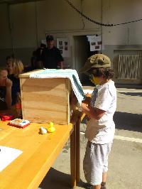 Die Kinder mussten Fragen beantworten wie: der gelbe Aufkleber für die Kinderzimmertür heißt? Wie alt unser ältester Alterskamerad ist? (102 Jahre alt, und zwar Josef Gabel), im welchem Jahr die Jugendfeuerwehr gegründet wurde? wer den Einsatzbefehlt gibt? und welche Farbe dass Notstromaggregat auf dem Löschgruppenfahrzeug hat.