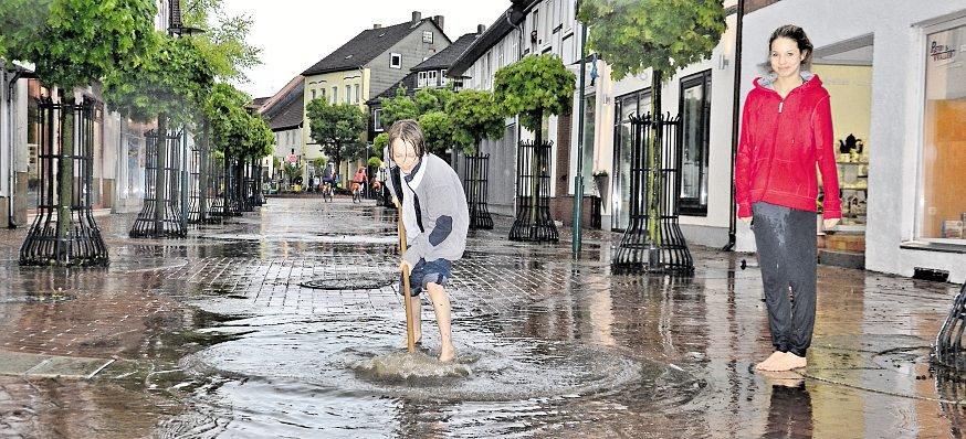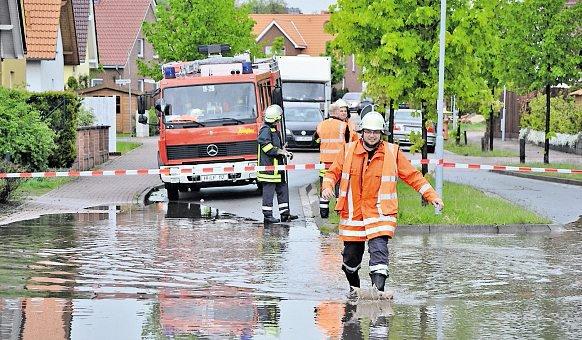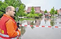 Die Kanalisation kann die Fluten einfach nicht aufnehmen. Punkt 18.43 Uhr geht der erste Notruf bei der Feuerwehr ein. Stadtbrandmeister Uwe Meyer ist da schon im Feuerwehrhaus angekommen, richtet eine Einsatzleitung ein. Er sieht: Das wird schlimm. Auch die Polizei rückt aus, Autofahrer melden per Handy Gullydeckel, die hochgedrückt sind und auf der Straße liegen. Gefährlich in der trüben Brühe, die sich überall ansammelt.