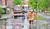 100 Feuerwehrleute und die Stadtentwässerung kämpfen gegen die Folgen des plötzlichen Starkregens gestern Abend