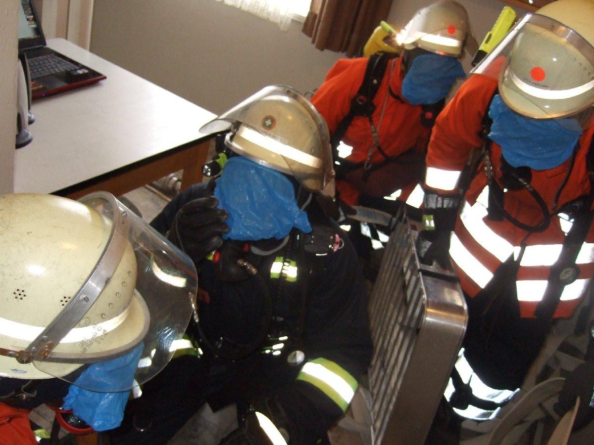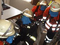Mühsam drangen sie in den oberen Teil des Gebäudes vor, als plötzlich durch eine Explosion bedingt der Einsatztrupp ausfiel. Es war kein Kontakt mehr zum Trupp möglich. Sofort mussten Rettungstrupps vorgehen und unter diesen schwierigen Bedingungen die Kameraden retten, was dann am Ende auch gelang.