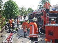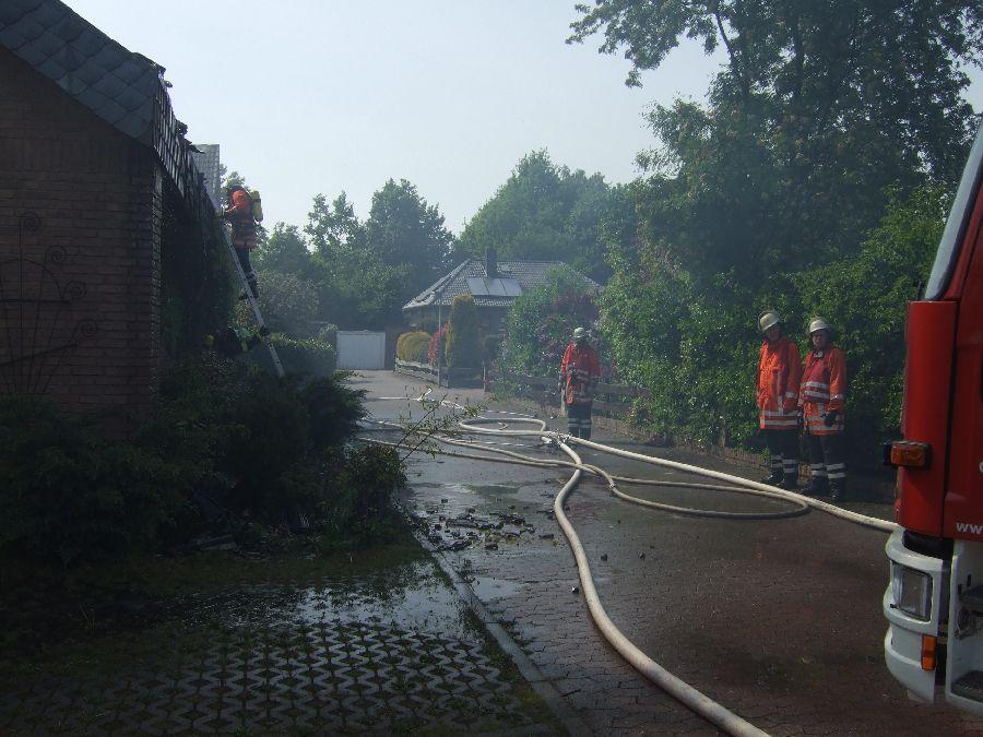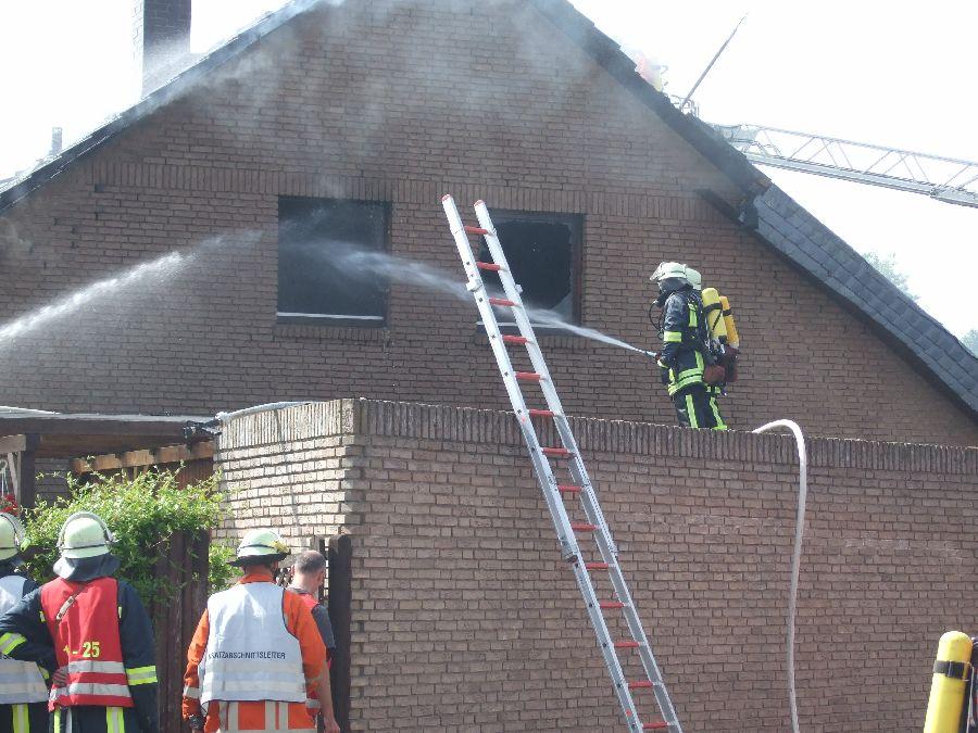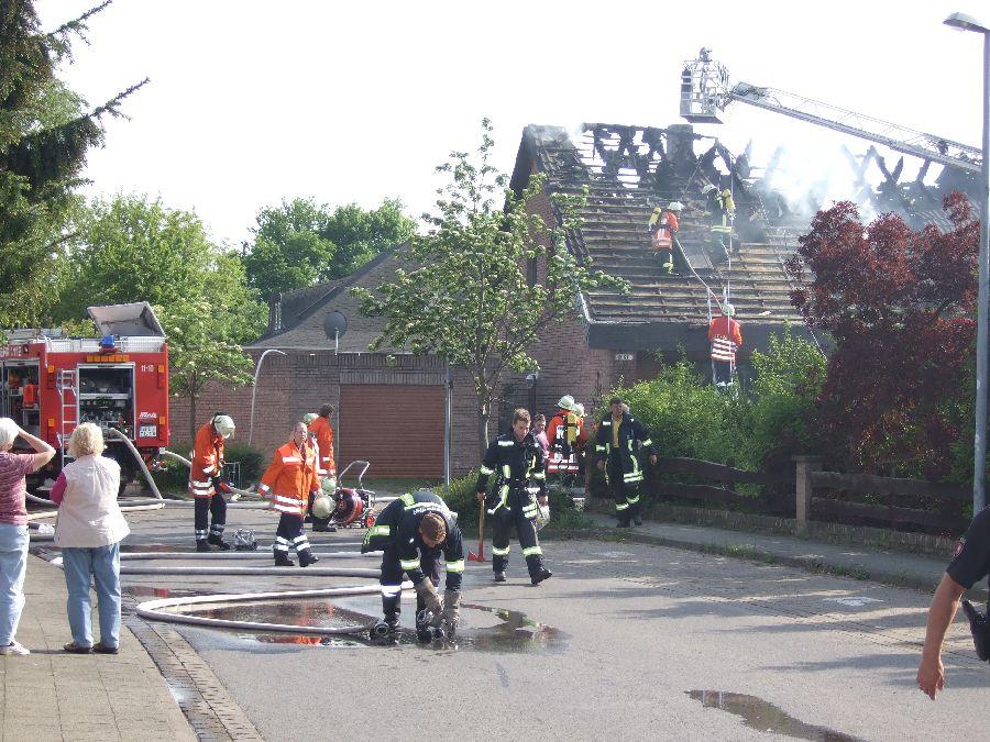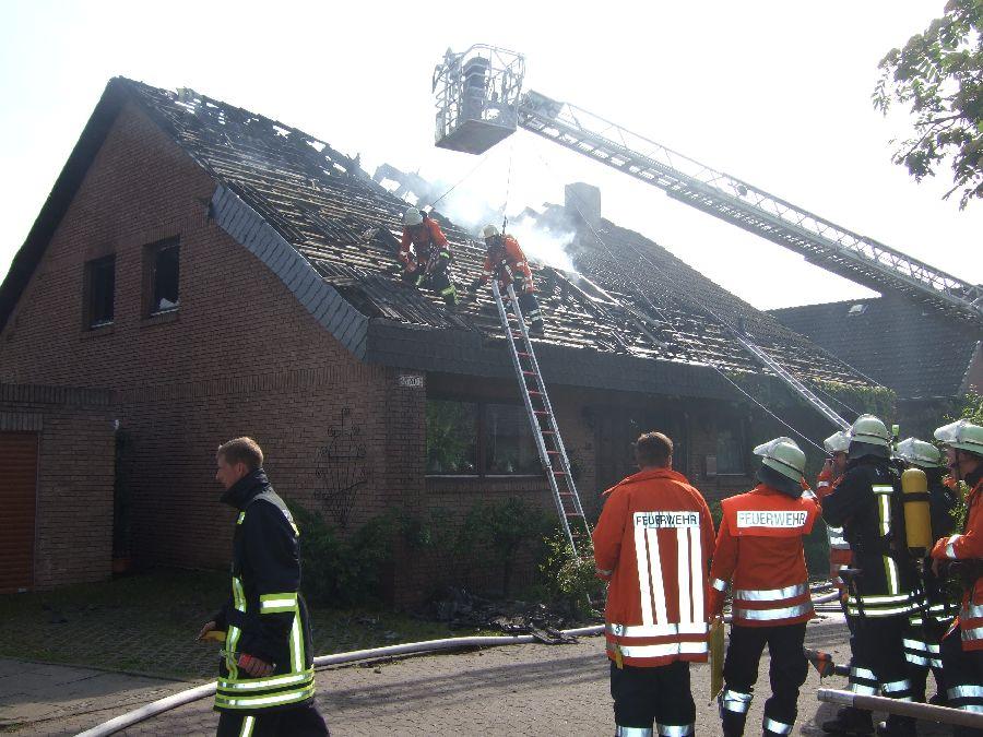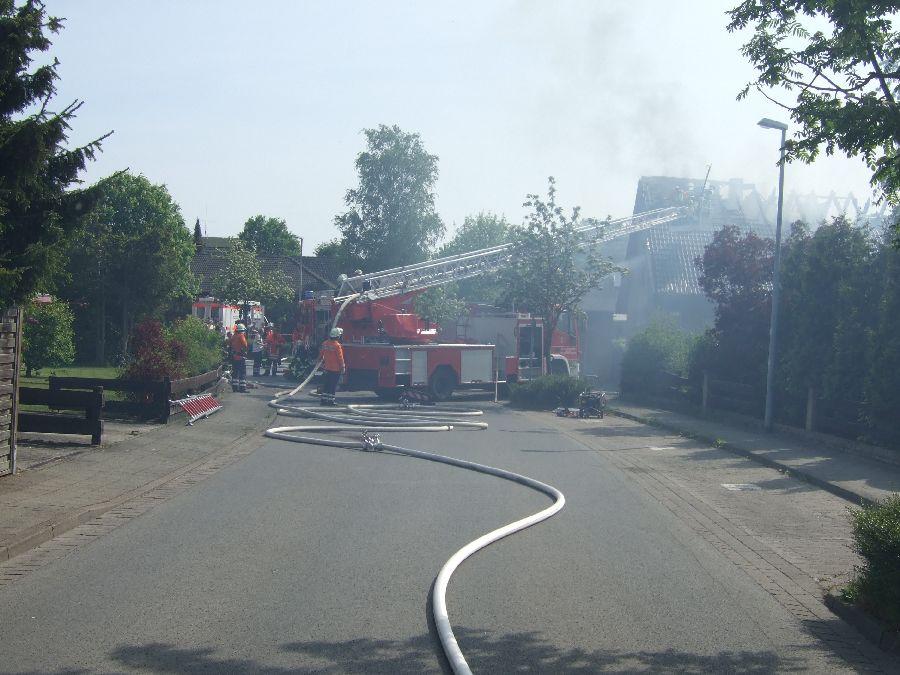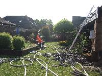 Sarstedt (ph). Ein Albtraum wurde wahr an diesem sonnigen Freitag: Mitten im Wohngebiet brannte ein Einfamilienhaus fast komplett ab, und der Besitzer stand daneben und konnte nichts tun. Mit 84 Mann kämpfte Sarstedts Feuerwehr gegen die Flammen.