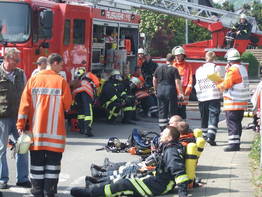 Viele Schläuche und Pressluftflaschen wurden benutzt. Die Feuerwehr holte laufend Nachschub aus dem Gerätehaus. Und nach dem Brand?
