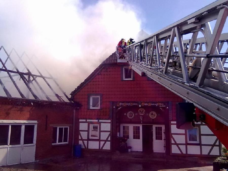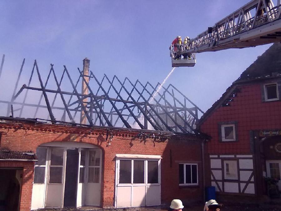 Hier brannte in der Ortsmitte eine Tischlerei mit angrenzenden Wohngebäude. Schon auf der Anfahrt war die Rauchsäule über dem Ort zu sehen. Am Einsatzort wurde die DLK eingewiesen und das Wenderohr in Stellung gebracht. Der mit ausgerückte ELW übernahm die Einsatzleitung. Nach 3 Stunden war der Einsatz beendet und beide Fahrzeuge wieder im Standort.