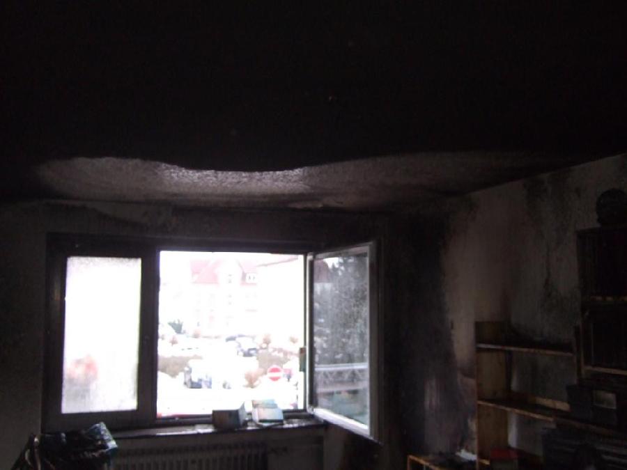 Kurze Zeit später waren das Tanklöschfahrzeug, die Drehleiter, das Löschgruppenfahrzeug und der Gerätewagen vor Ort. Zwei Trupps unter schwerem Atemschutz gingen in die Wohnung vor, um den Brand zu löschen. Zum Glück befanden sich keine Personen mehr in der Wohnung.