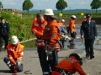 Die 2. Gruppe wird weiter vom Pech verfolgt. Nach sehr schnellem Kuppeln der Saugleitung sah man sich diesmal auf der Siegspur der TS-Gruppen. Jedoch beim Verlegen der C-Leitung wickelte sich ein Schlauch (Anm. der Redaktion: ausgerechnet meiner) um den Verteiler. Das Freilegen kostete viel Zeit und man musste sich mit dem 7. Platz zufrieden geben.