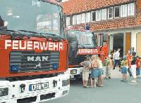 Dazu müssen die Teilnehmer allerdings zunächst ein kleines Feuerwehr-Rätsel lösen. Ein kleiner Junge zupft Rüdiger Schulz am Ärmel. Du, weißt du, wie viele Sitzplätze die Feuerwehrautos haben, fragt er. Dann zähl doch mal nach, schickt ihn der erfahrene Feuerwehrmann auf die Reise. Nach kurzer Zeit kommt der Junge freudestrahlend zurück. 41, ruft er. Na ja, fast, kommentiert Stadtbrandmeister Uwe Meyer. Er kann natürlich die Fragen aus dem Effeff beantworten. Zum Beispiel, dass es zusammen 40 Sitzplätze in den Fahrzeugen der Ortswehr sind, dass man zehn Jahre alt sein muss, um in die Jugendfeuerwehr eintreten zu dürfen, und dass das Tanklöschfahrzeug Raum für 2700 Liter Wasser hat. Oder aber, wie die Teilnehmer selbst schätzen müssen, den Inhalt von 30 Badewannen.