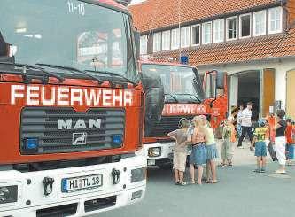 Der Giftener Ortsbrandmeister Stephan Wehling hat gleich seine Feuerflöhe eingesackt und ist zum Tag der offenen Tür nach Sarstedt gekommen. Wir wollen ihnen mal den großen Fuhrpark zeigen, erklärt Wehling. Die Feuerflöhe, Mädchen und Jungen im Alter zwischen sechs und zehn, sind noch zu jung für die Jugendfeuerwehr. Sie sollen spielerisch ans Retten, Löschen, Bergen herangeführt werden.