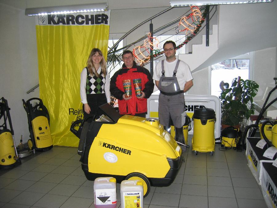 Ortsbrandmeister nimmt die bunten Tüten durch den Sponsor der Sarstedter Wärmetechnik Vertrieb Kärcher – Herrn und Frau Kollecker entgegen.