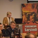 Begrüßen konnte er neben zahlreichen Aktiven Mitgliedern natürlich auch die Mitglieder der Jugendfeuerwehr und Altersabteilung, sowie als Gäste die Bürgermeisterin Heike Brennecke, den Stadtratsvorsitzenden Markus Brinkmann, den Kreisbrandmeister Josef Franke, den Ortsbeauftragten des THW Sarstedt Dr. Christian Rathke und Christian Hoffmann ebenso den Leiter des Einsatz- und Streifendienstes der Polizei Sarstedt Frank Müller, den Stadtjugendfeuerwehrwart Kai Brinkmann, vom DRK Hendrik Schroeder und last but not least die beiden Stadtbrandmeister Rüdiger Schulz und Jens Klug.