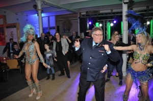 frühen Morgen andauernden Tanz eröffneten. Wie groß der Dank der Ruther gegenüber Wolfgang Lühmann ist, zeigten sie ihm durch ihr Abschiedsgeschenk an diesem Abend. Seine Augen wurden bei der brasilianischen Samba-Tanzgruppe immer größer und der ansteckend, fröhliche Rhythmus ließ die Party zu einem grandiosen Abend werden.