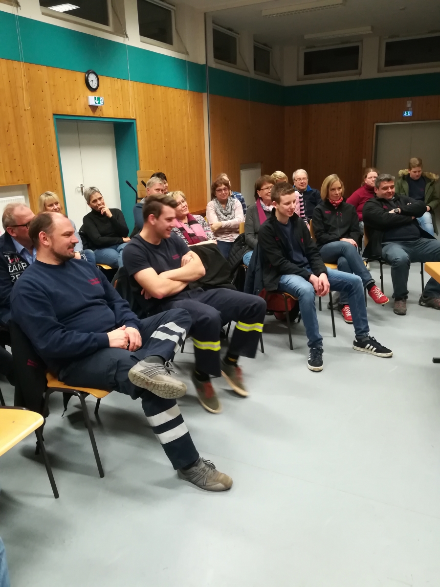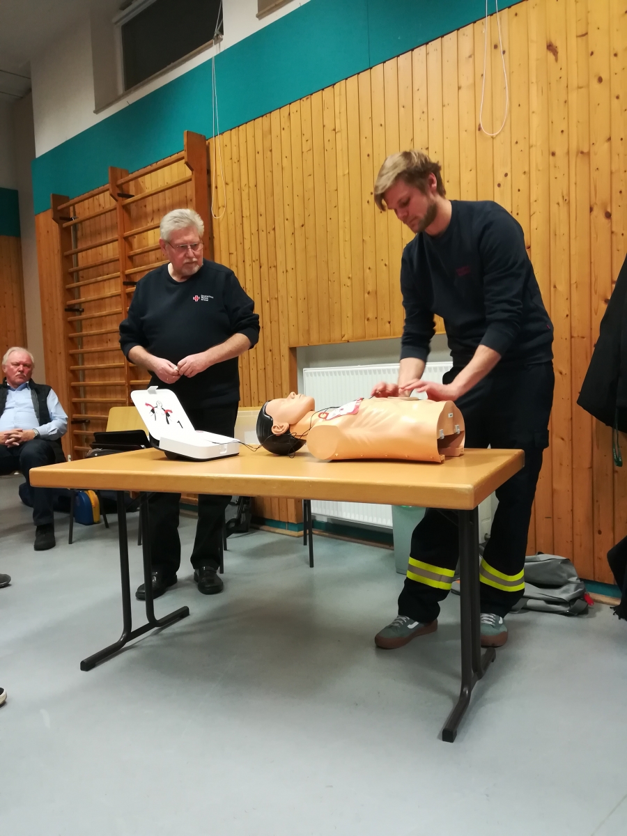 Zahlreiche Schliekumer waren der Einladung gefolgt. Auch die Schliekumer Feuerwehr nahm an der praktischen Unterweisung teil, die durch Heinz-Hermann Baxmann vom DRK Sarstedt durchgeführt wurde.