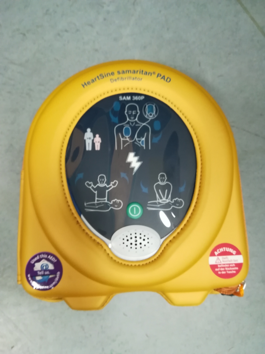 Erläutert wurde das Einsatzgebiet eines AED und der praktische Umgang mit dem Gerät. Insbesondere bei Herzkammerflimmern steigen die Überlebenschancen durch den Einsatz eines AED deutlich. Schnell zeigte sich, dass ein AED selbsterklärend ist. Über eine Sprachausgabe gibt das Gerät dem Benutzer nach dem Einschalten genaue Anweisungen, was zu tun ist.