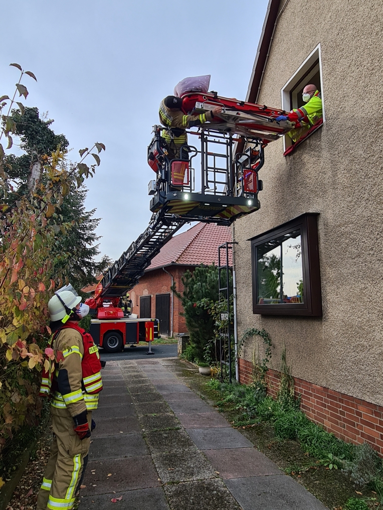 Am Montagvormittag wurde die Ortsfeuerwehr Schliekum um 10:45 Uhr zu einer Tragehilfe für den Rettungsdienst in die Oerier Straße alarmiert. Der Patient konnte nicht durch das Treppenhaus aus dem ersten Obergeschoss zum Rettungswagen gebracht werden. Mittels Schleifkorbtrage und der ebenfalls alarmierten Drehleiter der Ortsfeuerwehr Sarstedt konnte der Patient aus dem ersten Obergeschoss transportiert und dem Rettungsdienst übergeben werden.