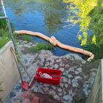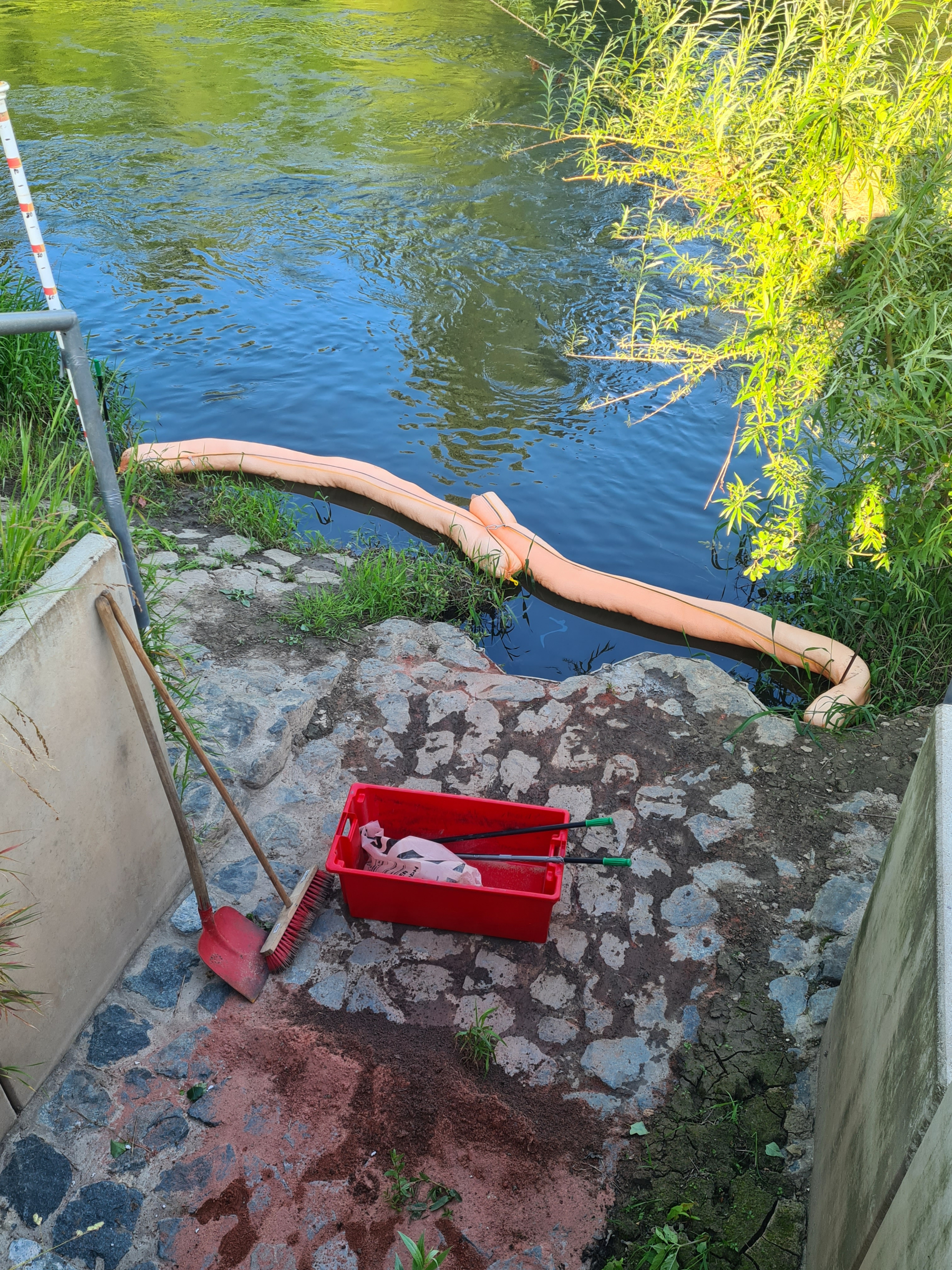 Am Dienstag wurde die Feuerwehr Schliekum gegen 18 Uhr zu einem Einsatz „Öl auf Gewässer“ alarmiert. Ein ca. 3 qm großer Ölfilm schwamm auf der Leine im Bereich des Regenwasserauslaufs. Dieser wurde mittels Ölsperren eingegrenzt und aufgenommen. Das Öl kam aus einem Regenwasserkanal, der in die Leine mündet. Durch Öffnen mehrerer Schächtend und Einsatz einer Kanalkamera konnte die Herkunft des Öls ermittelt werden. Durch eine Fachfirma wurde der Regenwasserkanal mit einem Spülwagen gereinigt und das verschmutzte Wasser aufgenommen. Die Stadtentwässerung sowie die Untere Wasserbehörde waren vor Ort, um die notwendigen Maßnahmen einzuleiten. Gegen 0:30 Uhr war der Einsatz beendet.