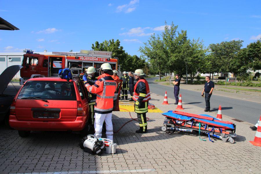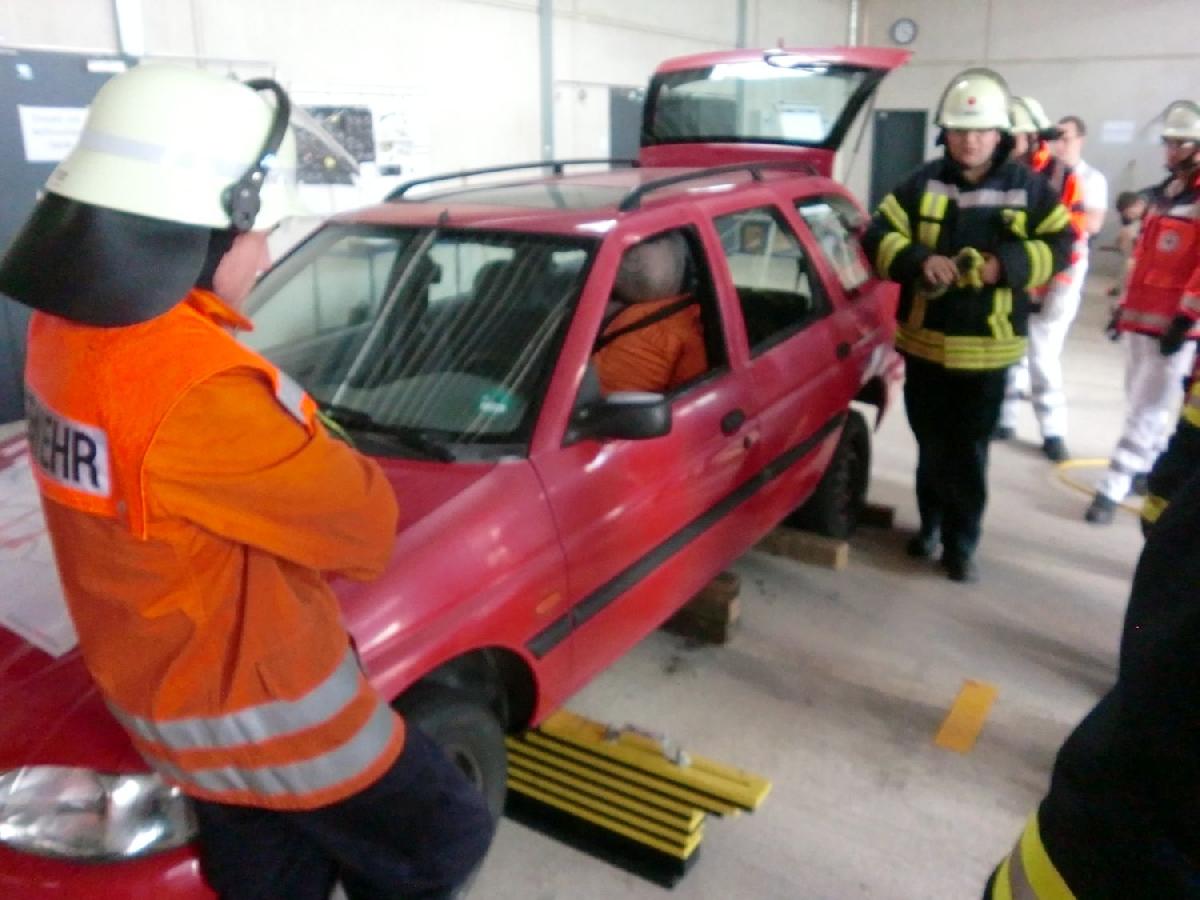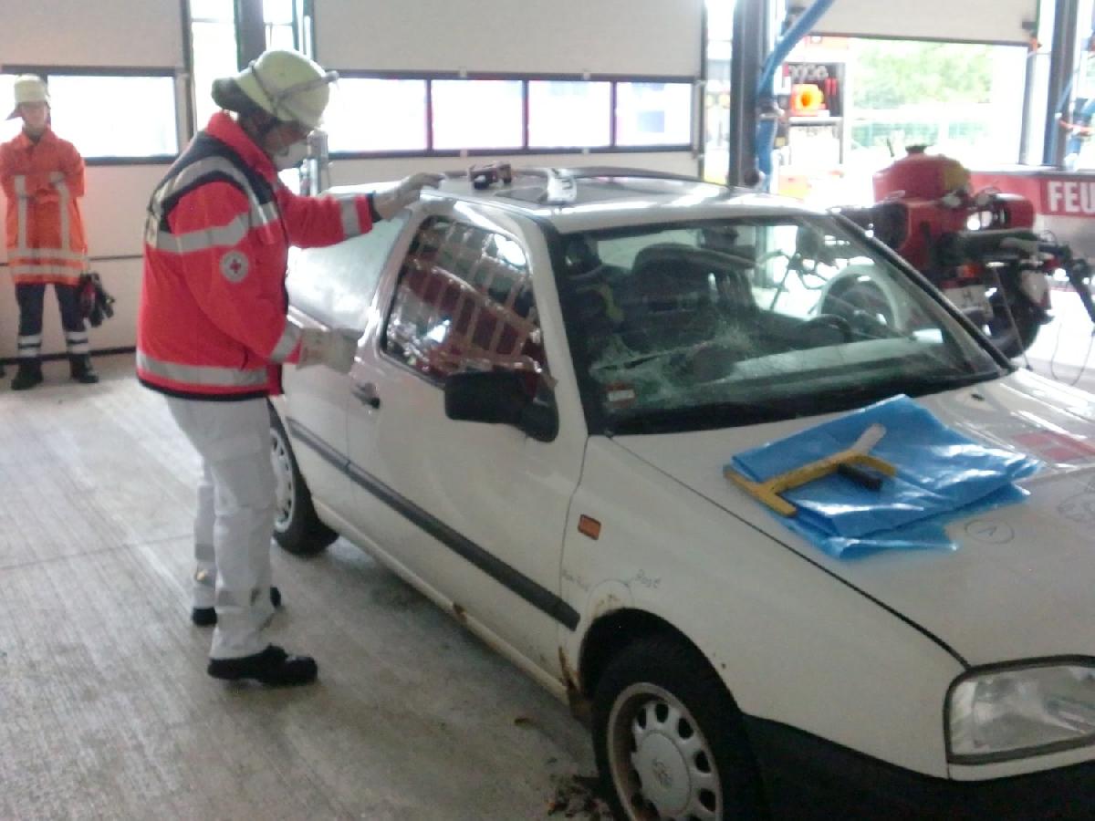 In dem daran anschließenden ersten Praxisblock wurde an realen Fahrzeugen unter anderem das Innenraumscreening, Glas- und Batteriemanagement, Airbag + Airbagregel sowie der Einsatz… von technischem Gerät geschult. Höhepunkt war hier die Zündung einer Airbageinheit.