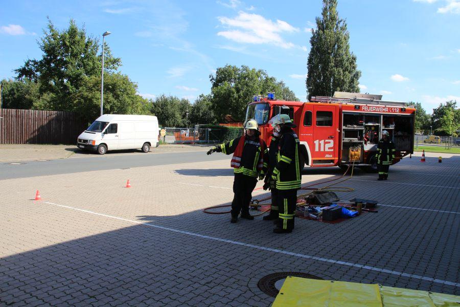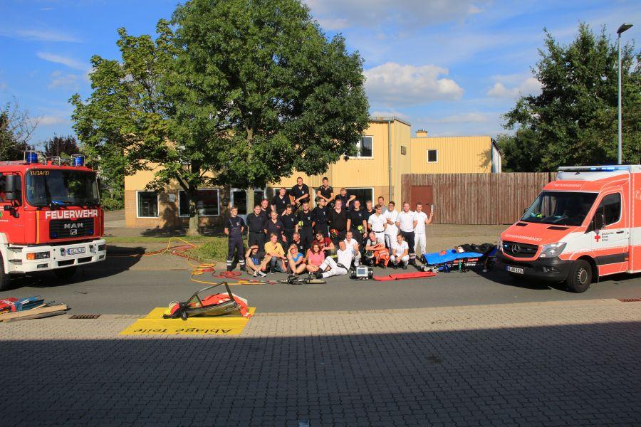 Nach einer kurzem Mittagspause ging es mit dem zweiten Praxisblock weiter. Zunächst galt es Material und… Maßnahmen des Rettungsdienstes kennenzulernen um anschließend das Zusammenspiel von Feuerwehr und Rettungsdienst zu trainieren.