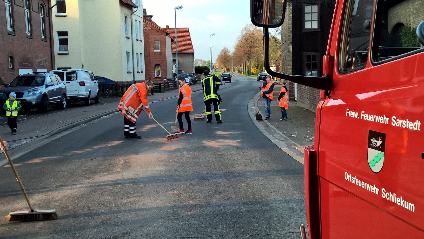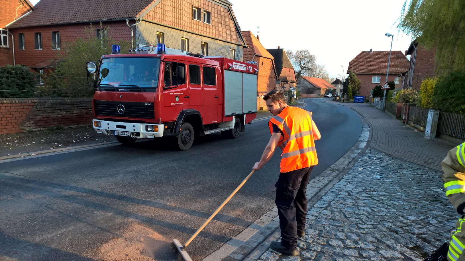 Die Jugendlichen der Jugendfeuerwehr Schliekum waren am Freitagabend nach ihrem Übungsdienst auf dem Weg zum Feuerwehrhaus, als sie auf der Pattenser Straße einen riesigen Ölfleck entdeckten. Unverzüglich informierten die aufmerksamen Jugendlichen ihre Betreuer. Die entdeckten auf der Straße neben dem Ölfleck eine zerstörte Literflasche Motoröl. Deren Inhalt verteilte sich offensichtlich großflächig auf der Straße. Dies rief die Einsatzabteilung der Ortsfeuerwehr Schliekum auf den Plan. Mit Ölbindemittel wurde der Ölfleck abgestreut und das Bindemittel wieder aufgenommen. Doch damit nicht genug. Eine Ölspur zog sich auf der Pattenser Straße entlang Richtung Schliekumer Straße. Selbst auf der Schliekumer Straße in Richtung Ortsausgang nach Ruthe fanden sich noch Spuren des Öls. Auch die Ölspur wurde von den sieben Einsatzkräften beseitigt. Nach rund 90 Minuten war der Einsatz beendet. Der Verursacher der Verunreinigung ist nicht bekannt.