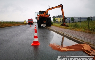 An einem Traktor ist bei Arbeiten am Regenkanal ein Hydraulikschlauch geplatzt. Die Feuerwehr Sarstedt konnte mit Ölbinder und Ölsperren den Schaden eindämmen. Durch eine Fachfirma wurde die Straße gereinigt.