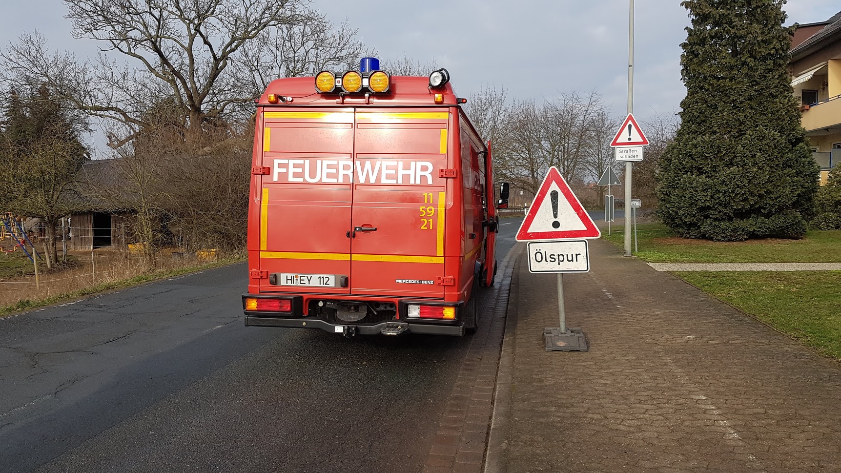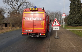 Im Einfahrtsbereich zu den Parkfläche der ansässigen Sportanlage konnte ein etwa armdicker Baum dem Sturmtief “Kirsten” offenbar nicht standhalten. Die angebrochene Krone drohte auf die Fahrbahn zu fallen. Mittels einer Handsäge wurde der stark beschädigte Baum gefällt und die Gefahr beseitigt.