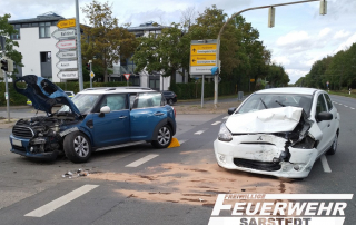 Bei dem Unfall wurde eine Person verletzt. Da jedoch glücklicherweise keine der beteiligten Personen eingeklemmt war, sicherten wir zunächst die Einsatzstelle gegen den laufenden Verkehr ab und stellten den Brandschutz sicher. Im Anschluss wurden ausgelaufene Betriebsstoffe abgesichert. […]