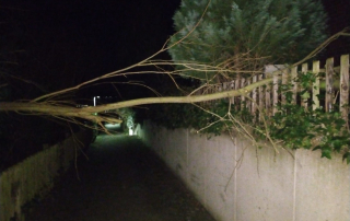Ein kleiner Baum lag über einen Gehweg. Dieser wurde zur Seite geräumt. Auch hier werden die weiteren Tätigkeiten durch den Bauhof übernommen.