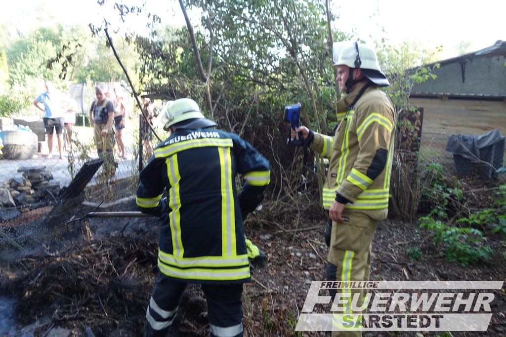 Kurz vor 17 Uhr wurde die Feuerwehr Sarstedt zum zweiten Brandeinsatz an diesem Tag gerufen. Diesmal führte es uns in die Gartenkolonie am Teinkamp.