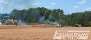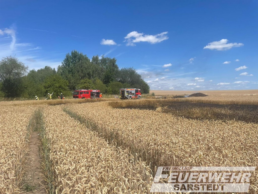 Nachdem bei unseren letzten Ausbildungsdiensten das Thema Vegetationsbrand auf den Programm stand, ging es für uns heute zu einem brennenden Kornfeld. Zusammen mit den Feuerwehren Gödringen, Heisede und Hotteln aus dem ersten Löschzug fuhren wir an ein Feld in der Nähe des Neubaugebiets “Sonnenkamp-Ost” und der Tonkuhle. Auf ca. 1,5ha brannte das Getreide. Durch das schnelle Vornehmen von Feuerpatschen und Wasser aus mehreren Rohren sowie durch Umpflügen des Feldes durch den Bauern konnte die rasche Ausbreitung unterbunden werden. Die Kräfte des ersten Löschzuges waren so schnell vor Ort, dass die Ortsfeuerwehr Sarstedt in Bereitstellung bleiben konnte. Verletzt wurde niemand.