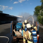 Bei Temperaturen um 30°C wurde die Feuerwehr Sarstedt zu einem Containerbrand auf dem ehem. EDEKA Gelände alarmiert. Auf dem Gelände brannte ein Abrollcontainer der unter schwerem Atemschutz abgelöscht,teilweise entleert und anschliessend mit Schaum geflutet wurde.