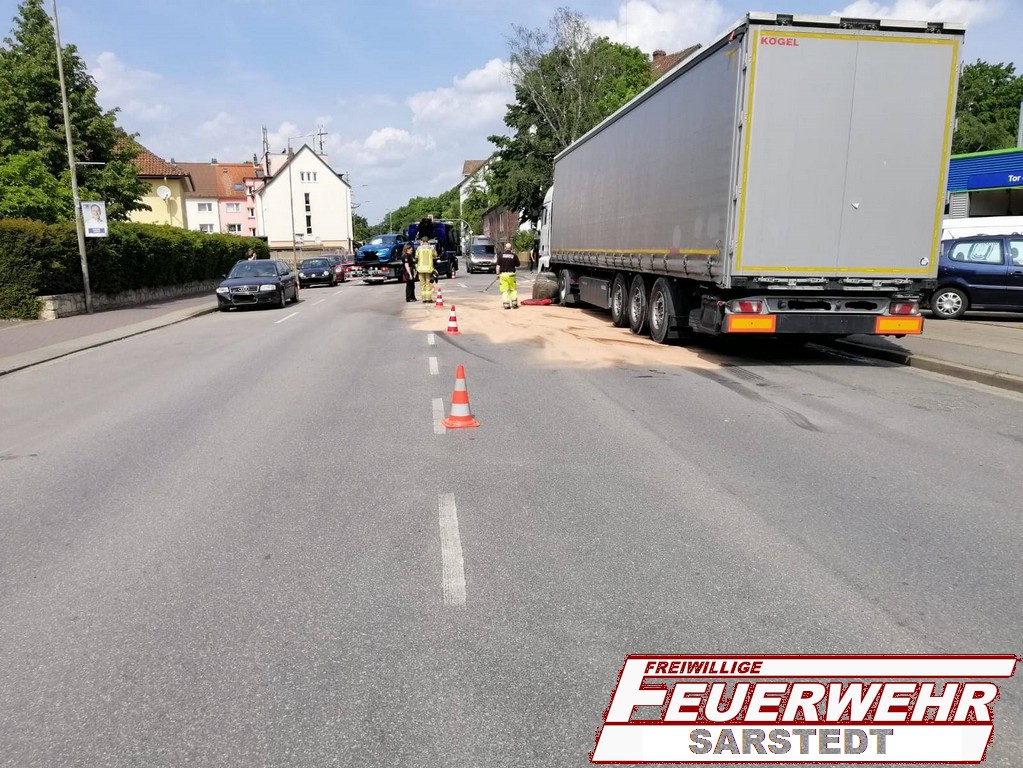 Bei einen Verkehrsunfall in er Voss-Str. wurde an einem LKW der Dieseltank abgerissen. Der Kraftstoff ist sowohl über die Straß, als auch über die Kanalisation in das Überlaufbecken der Innerste geflossen.