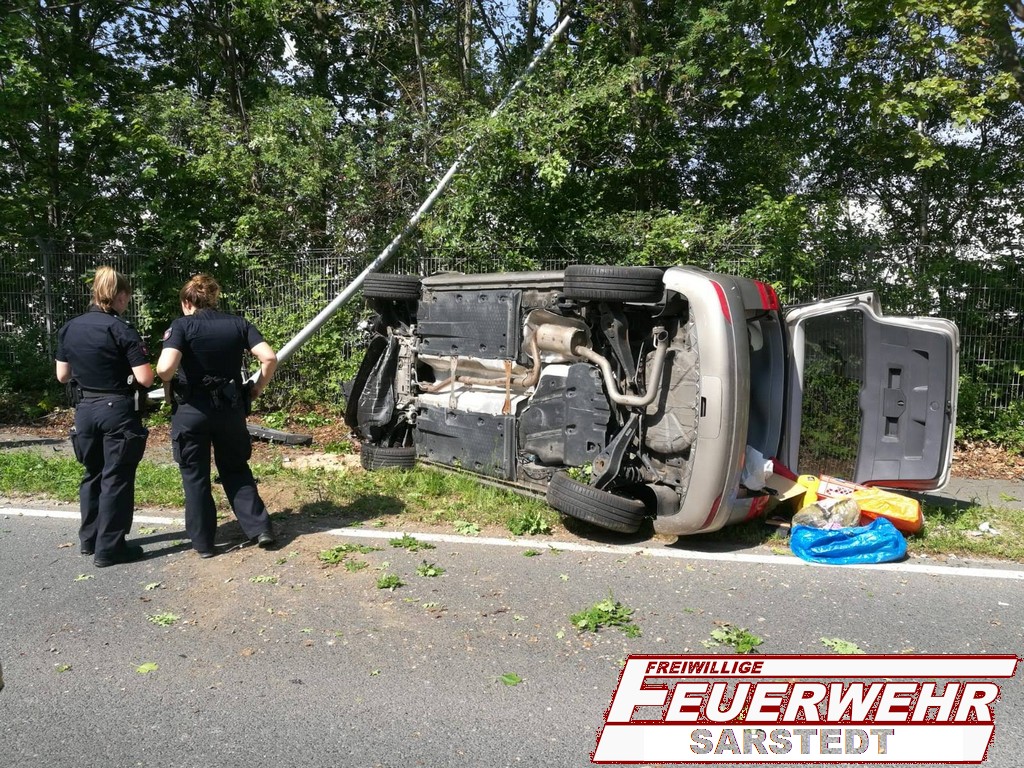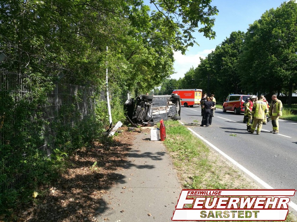 Die Personen waren beim Eintreffen bereits aus dem Auto befreit. Beide Personen wurden dem Rettungsdienst übergaben und kamen in ein Krankenhaus. Der PKW lag abseits der Fahrbahn auf der Seite.