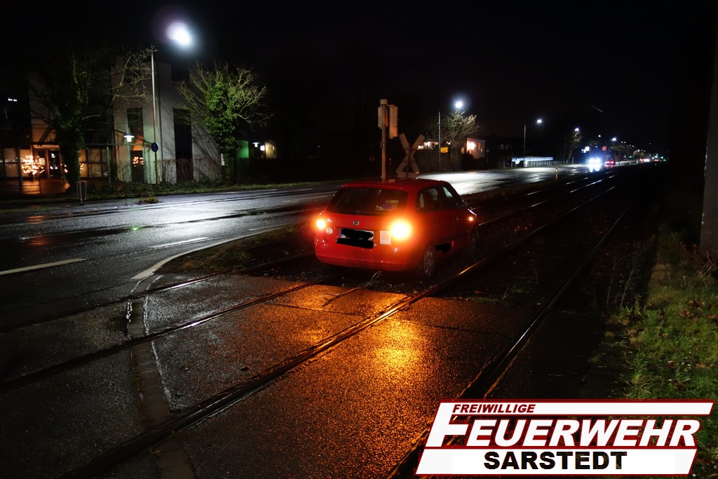 Aus Unachtsamkeit geriet ein PKW ins Gleisbett der Üstra. Dieser wurde mittels Seilwinde des RW (Rüstwagen) aus Hotteln befreit.