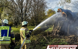 Vor Ort wurde ein Baum vorgefunden, der in Vollbrand stand und drohte, auf umliegende Vegetation überzugreifen. Der Angriffstrupp ging umgehend unter schwerem Atemschutz mit dem ersten C-Rohr vor, um eine Ausbreitung des Feuers zu verhindern. […]
