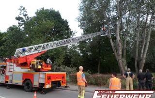 Dieser wurde mittels Kettensäge aus dem Korb der Drehleiter abgesägt und am Boden zur Seite gezogen. Für den weiteren Abtransport ist der Bau- und Betriebshof der Stadt Sarstedt verantwortlich.